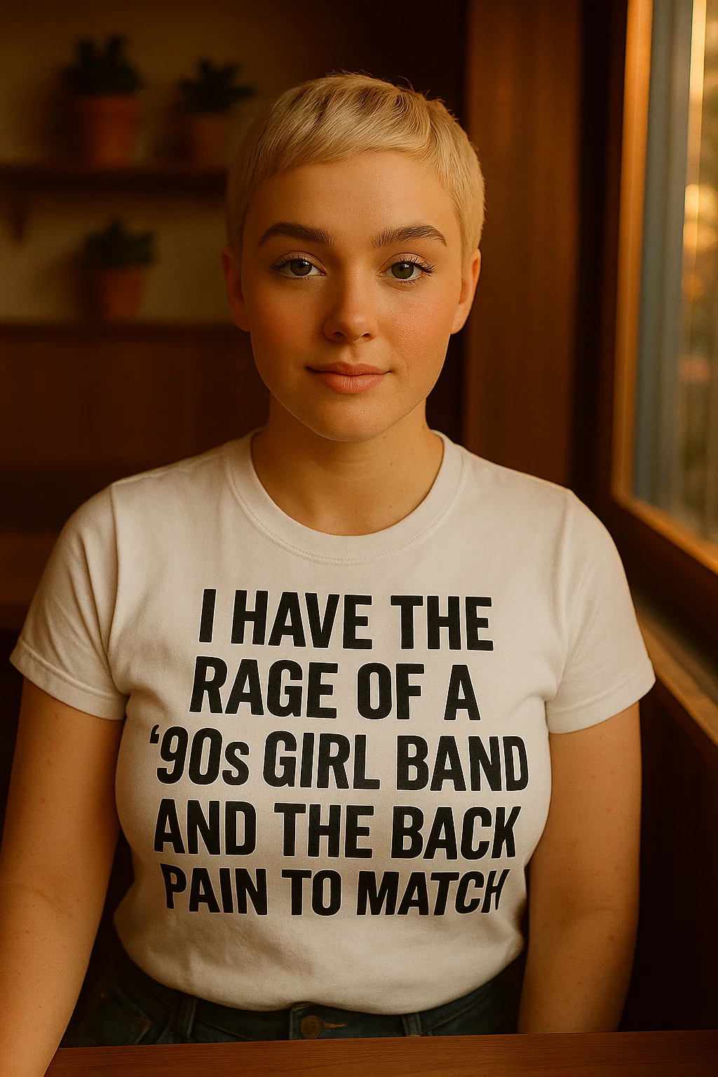 This “I Have the Rage of a ‘90s Girl Band and the Back Pain to Match” white shirt is for the ones who grew up screaming lyrics into hairbrushes and now scream into the void when they throw out their back picking up laundry.