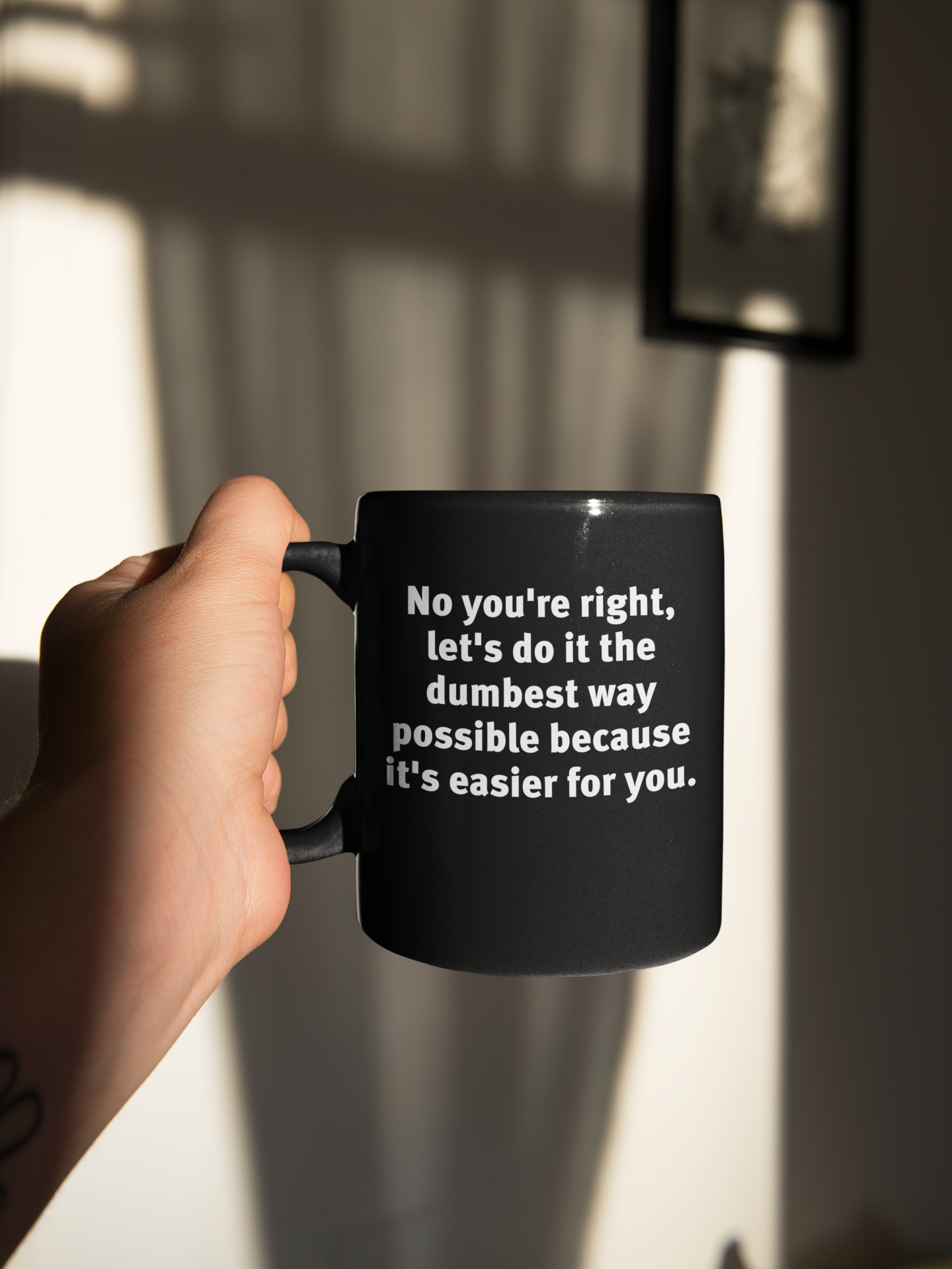 We all have had to do this before. Bosses, spouses, coworkers, it's always the same. Do it the dumb way and watch it fail before we can do it the right way, like it should've been done in the first place!
