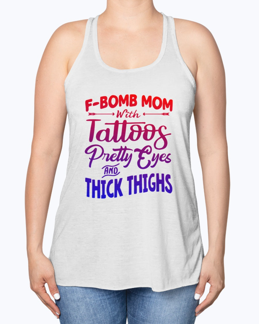 F Bomb Mom with Tattoos Pretty Eyes and Thick Thighs women's shirts and t tops