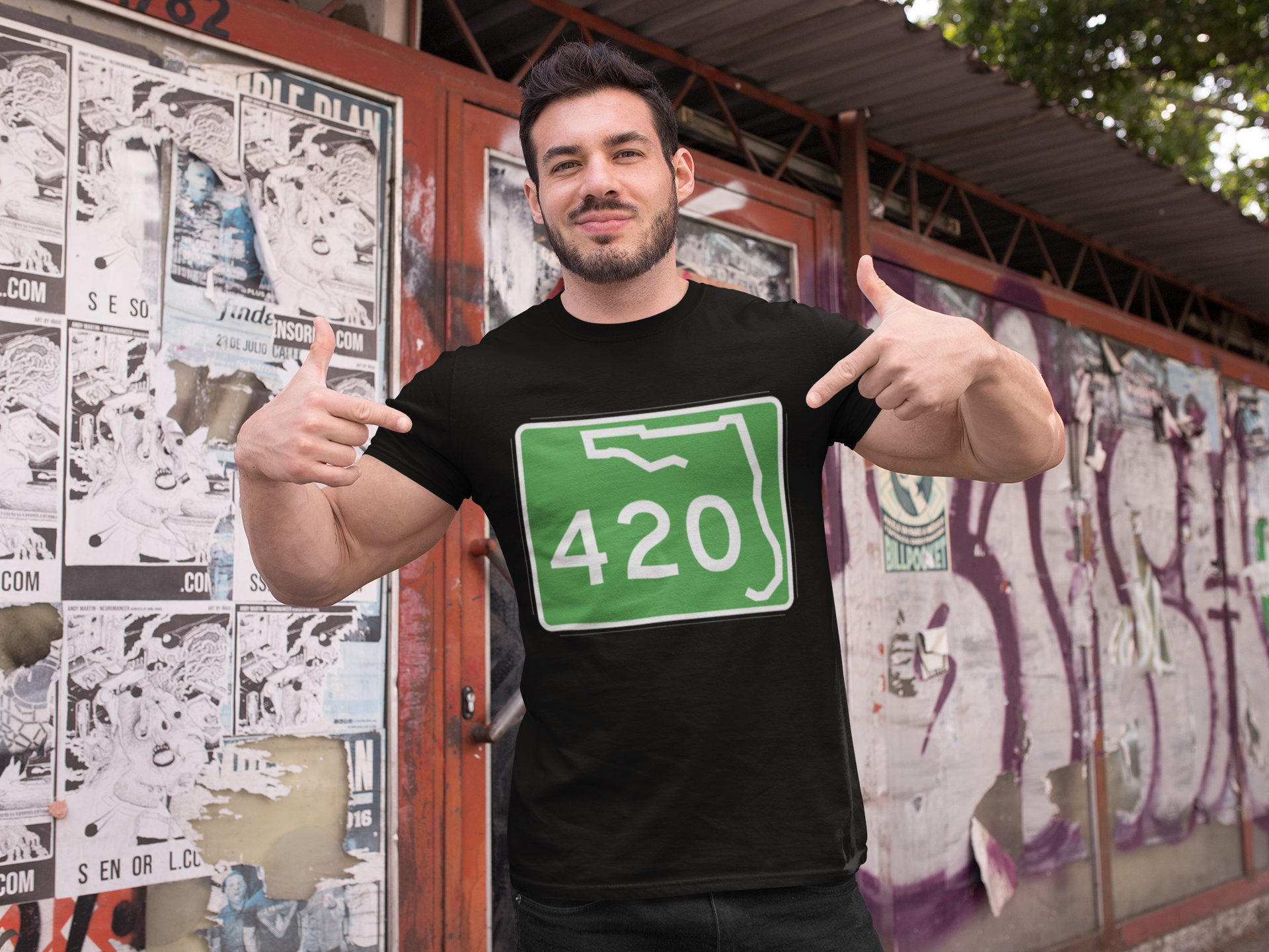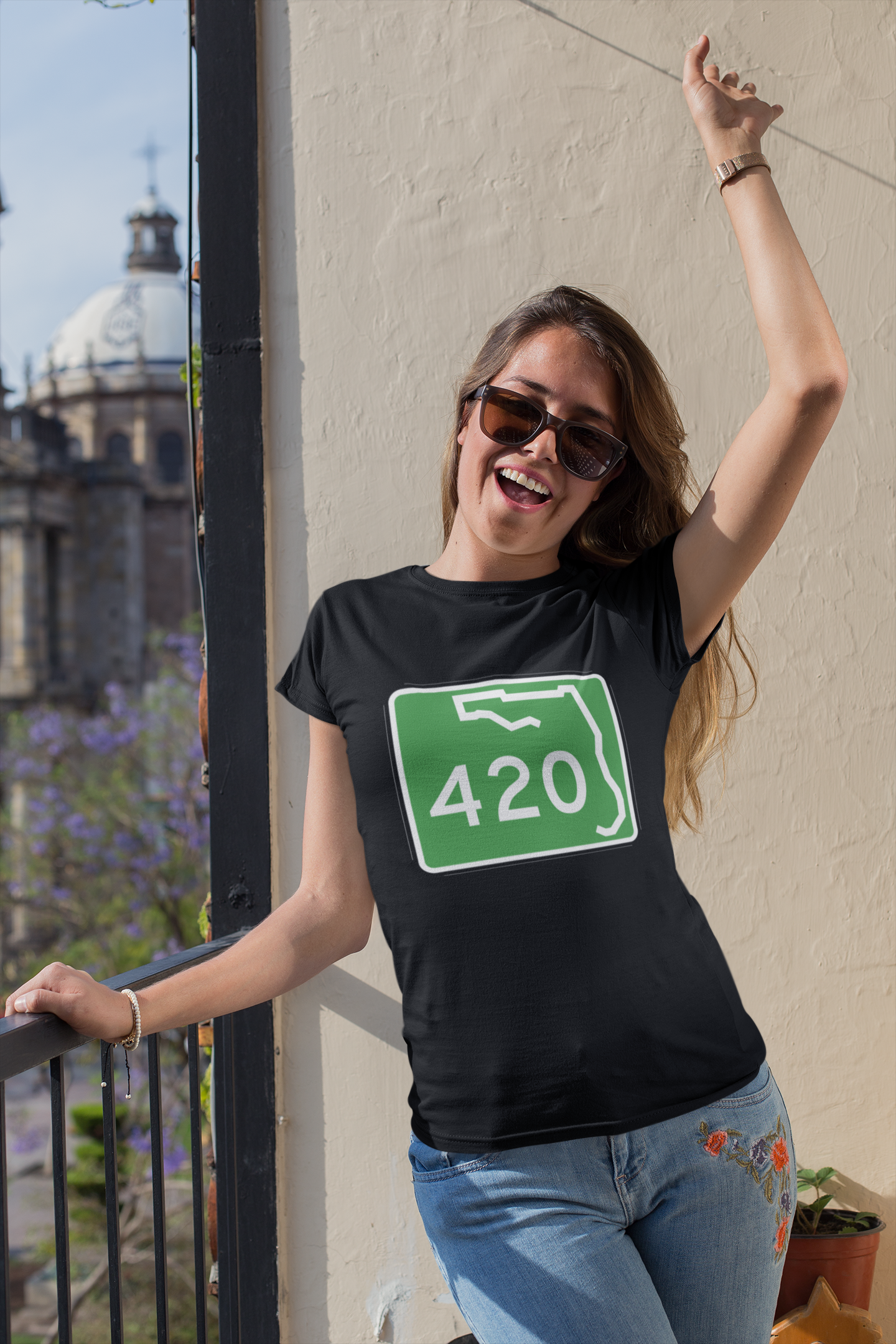 Show your appreciation for the Sunshine State with this Florida 420 green/black Shirt or Tank. Available in men's and women's sizes, this apparel celebrates the friendly cannabis laws of Florida.