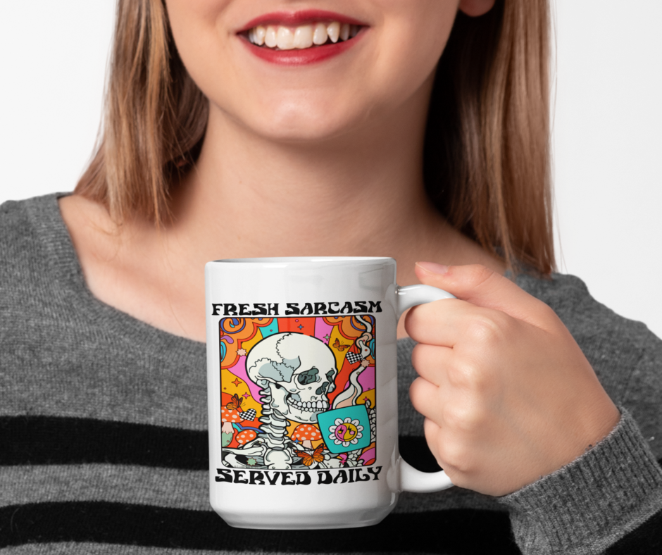 Fresh Sarcasm Served Daily 15 ounce ceramic mug