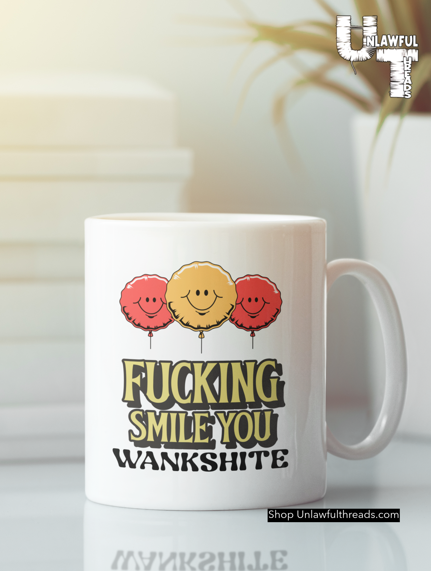 Fucking Smile you Wankshite ceramic coffee mug 15 ounce