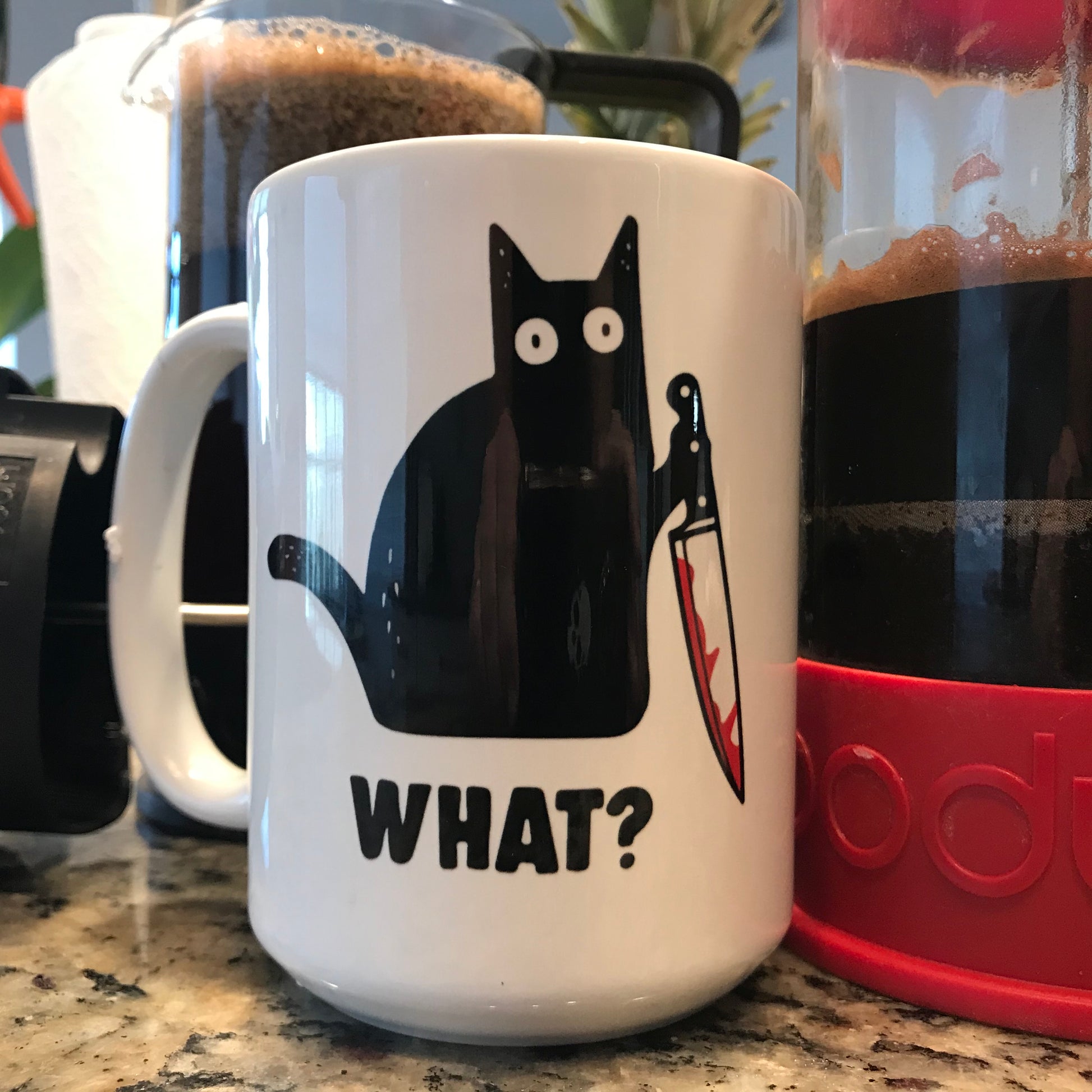 Funny coffee mug Black Cat Knife What? 15 oz. coffee mug