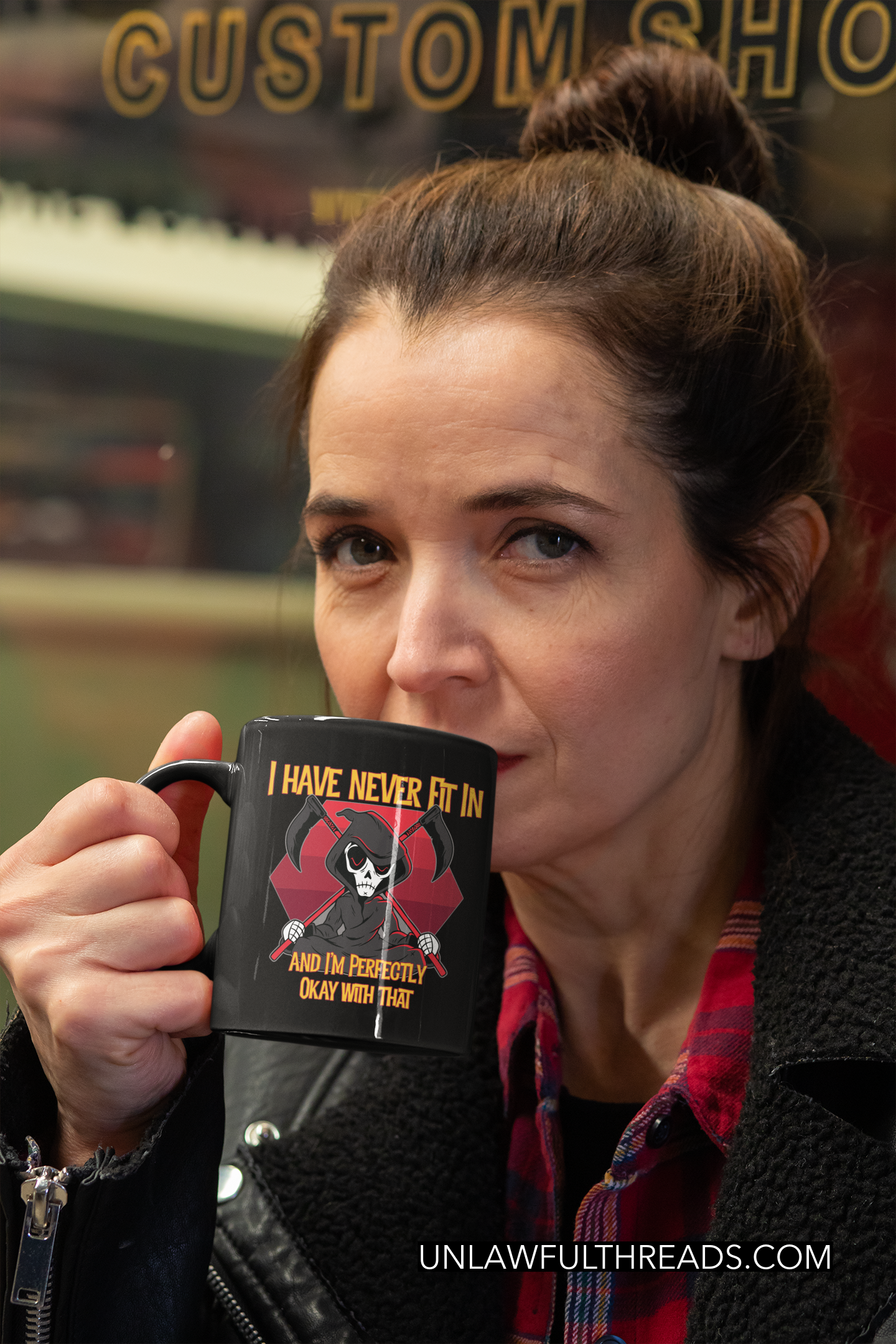 I have never fit in and I'm perfectly okay with that ~ shirts and coffee mugs available