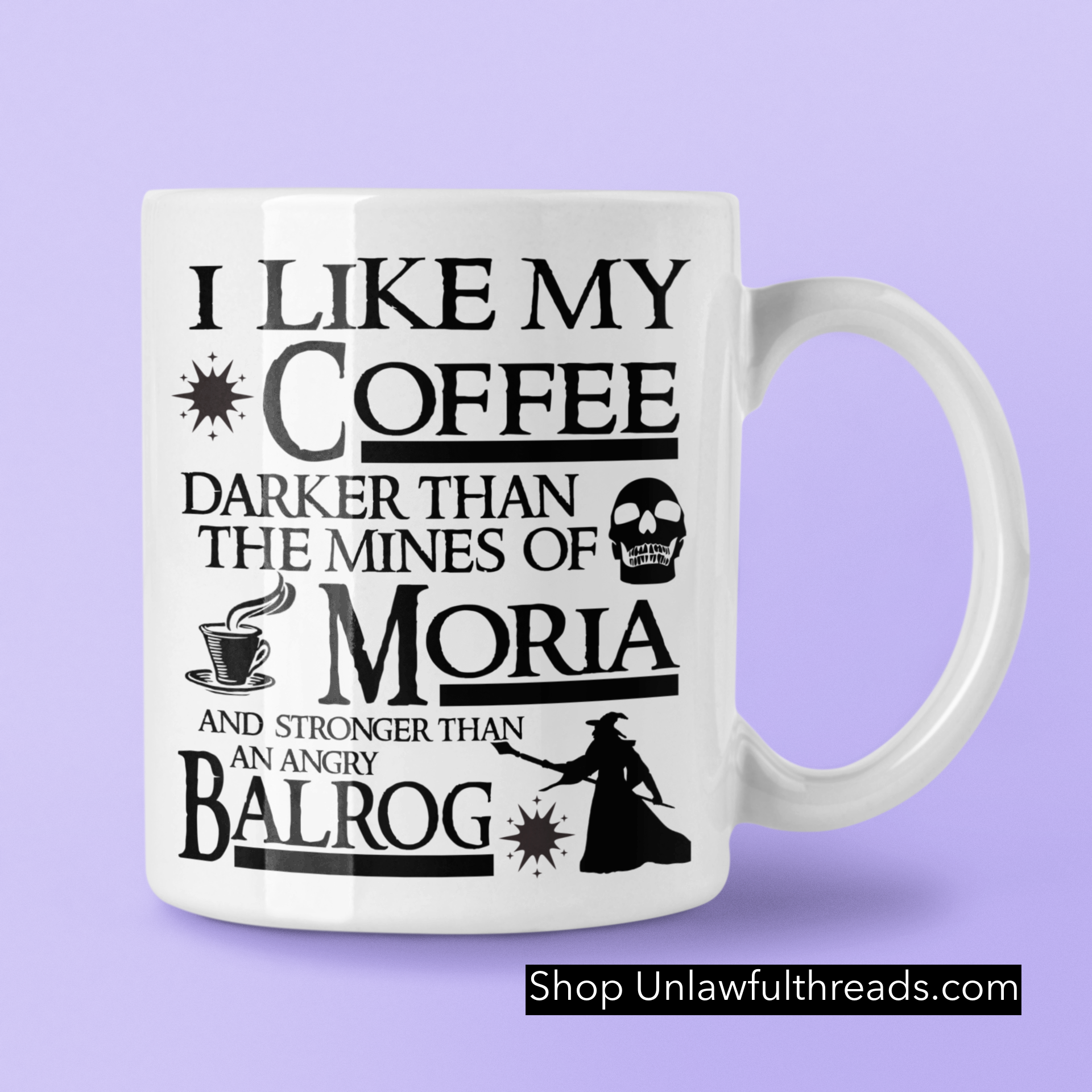 I Like my Coffee darker than the mines of Moria and stronger than an Angry Balrog 15 ounce coffee mug