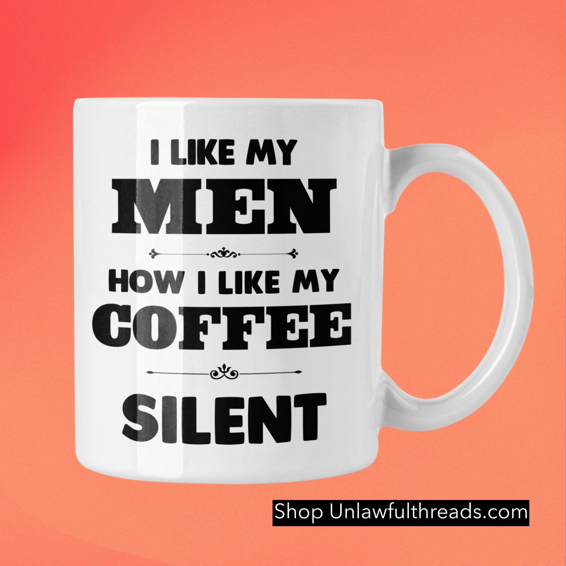 I like my men how I like my coffee silent 15oz. ceramic coffee mug