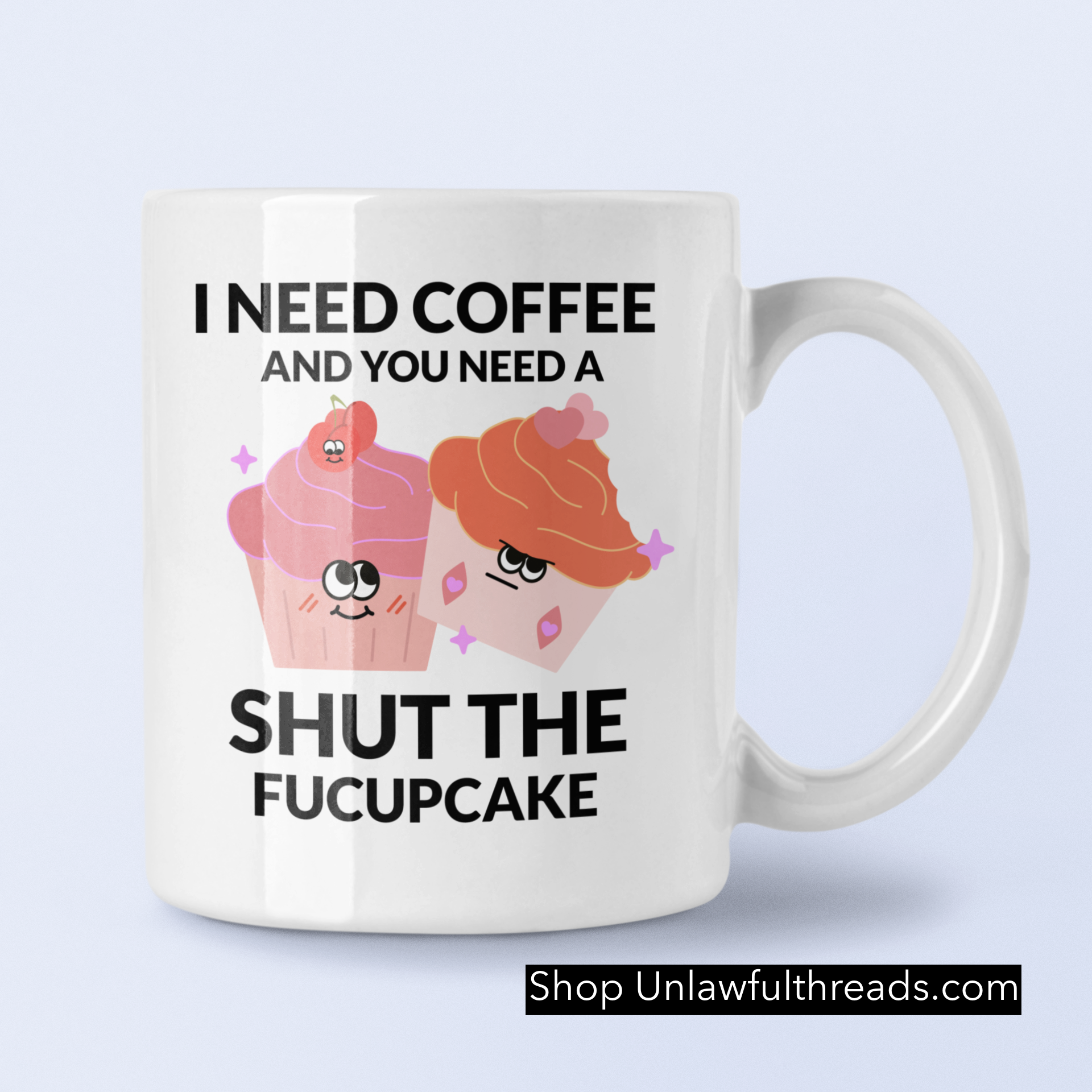 I need Coffee and You need a Shut the Fucupcake 15 ounce ceramic coffee mug of baked snarkiness