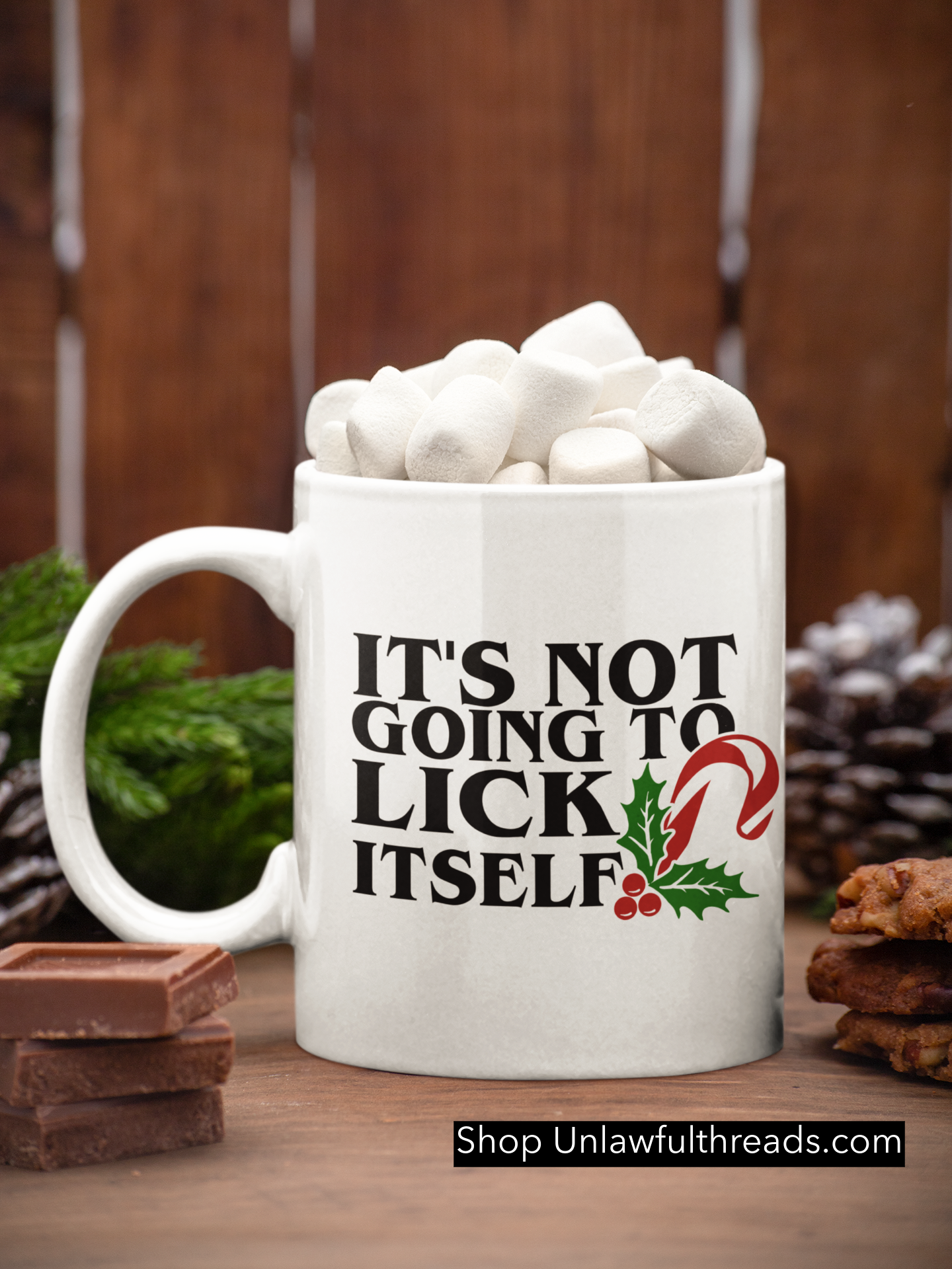 IT'S NOT GOING TO LICK ITSELF XMAS CANDY CANE 15 OZ. COFFEE MUG