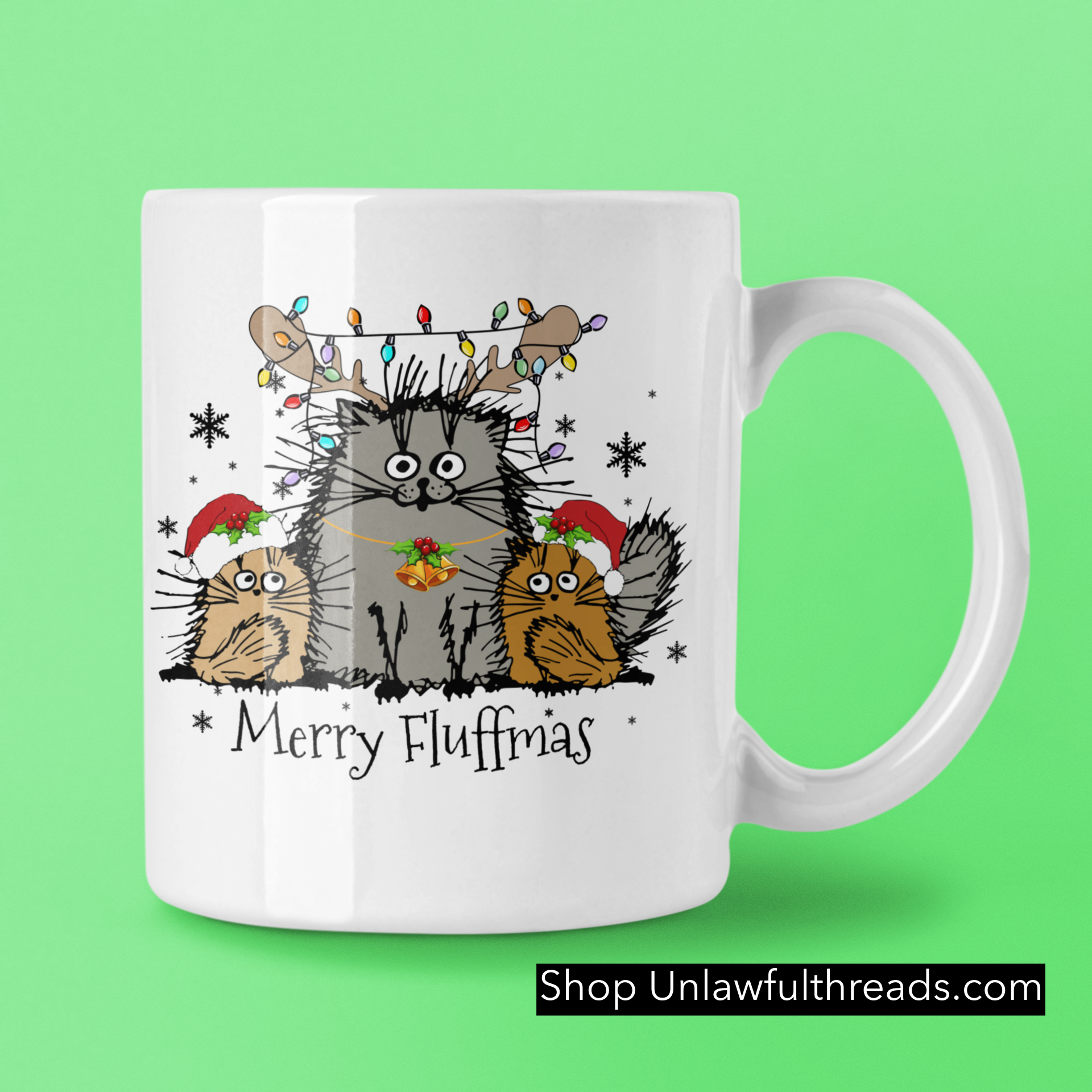 MERRY FLUFFMAS coffee mug white 15 ounces