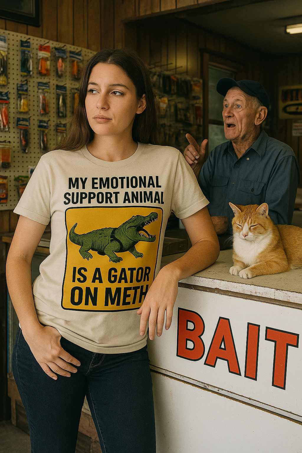 Introducing your new favorite Florida shirt: “My Emotional Support Animal Is a Gator on Meth.” 🐊💥
