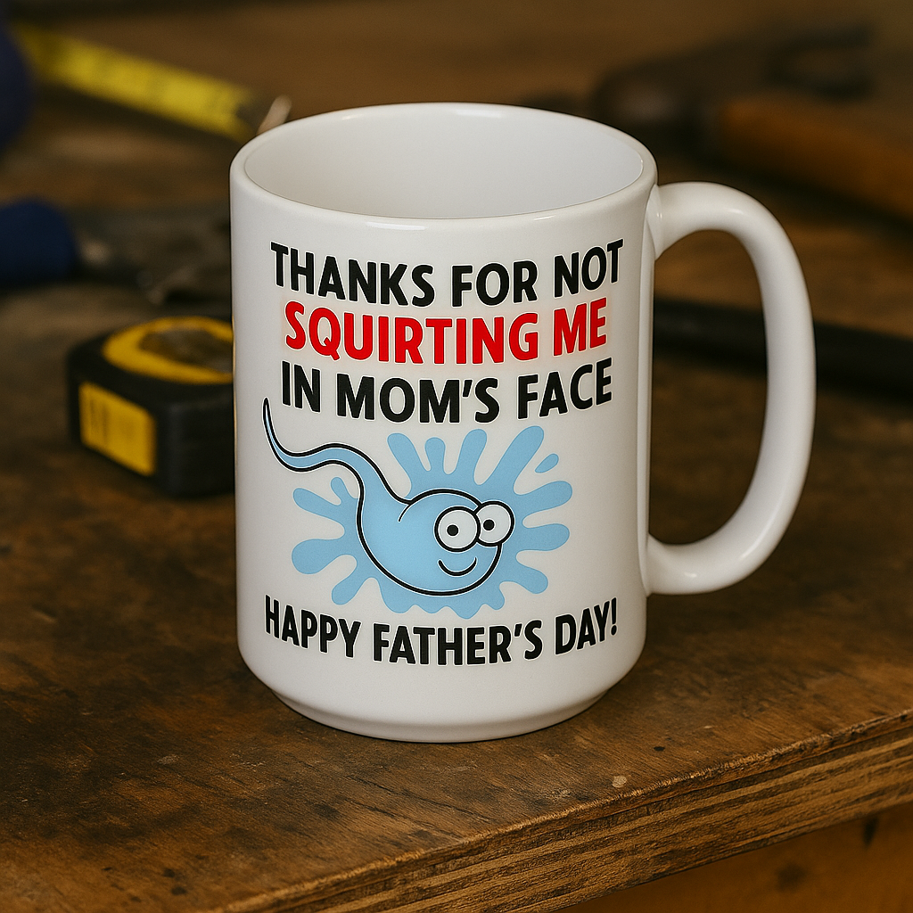 NSFW Father's Day Mug – Thanks for Not Squirting Me in Mom’s Face (White 15oz)
