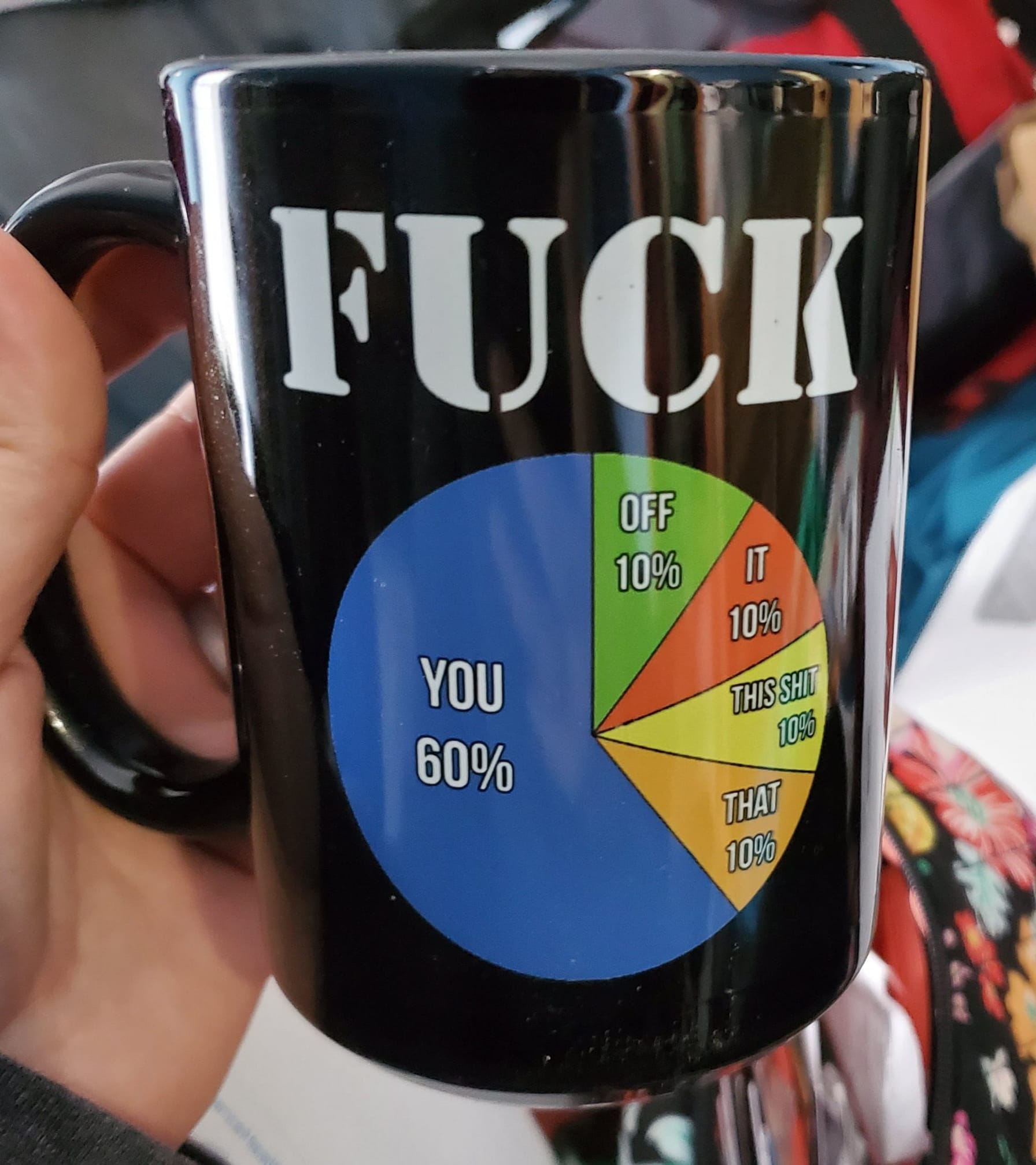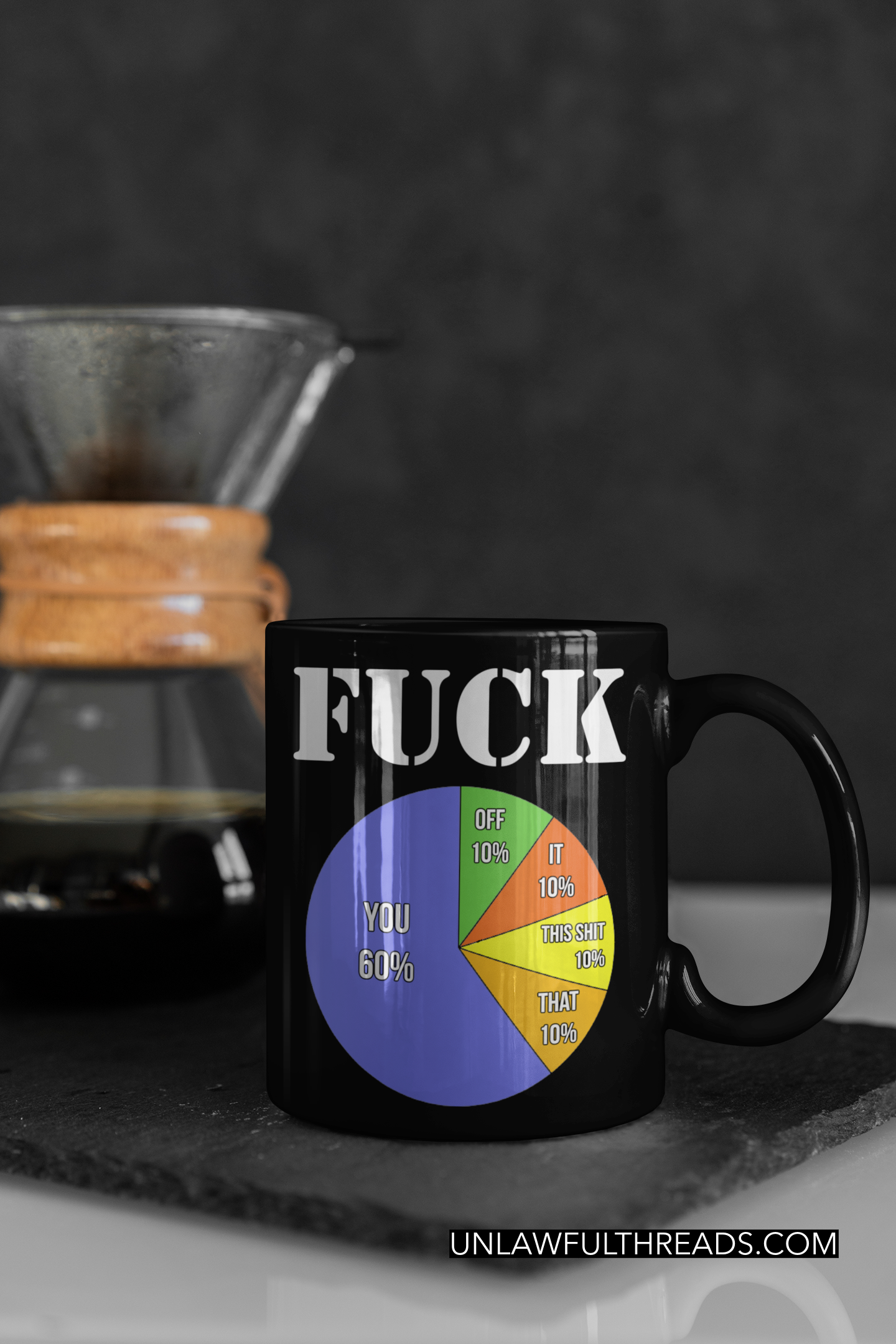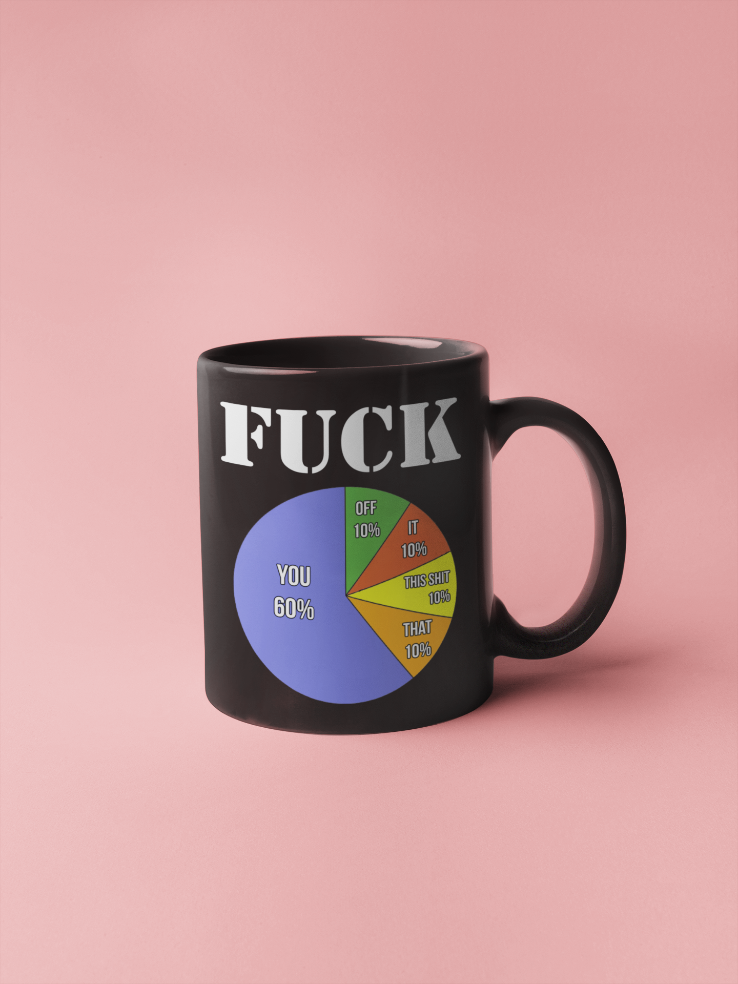 Percentages of F*ck pie chart black coffee mug 15 oz.