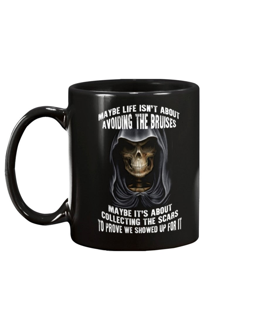 Skull shirt maybe life isn't about avoiding the bruises maybe it's collecting scars skull coffee mug 15oz. or skull shirts