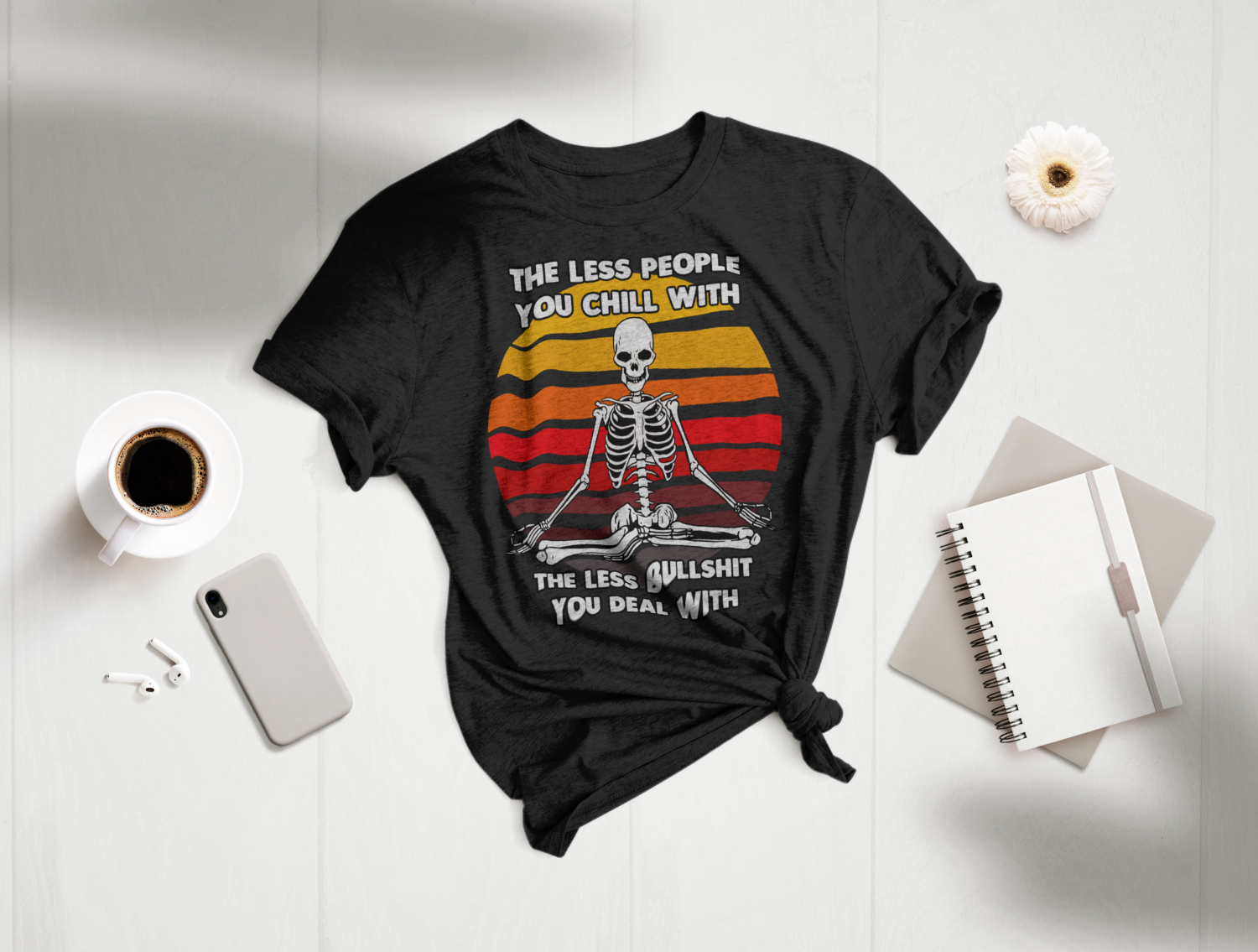 The less People you chill with ~ the less bullshit you deal with ~ shirts and coffee mugs available (black only)