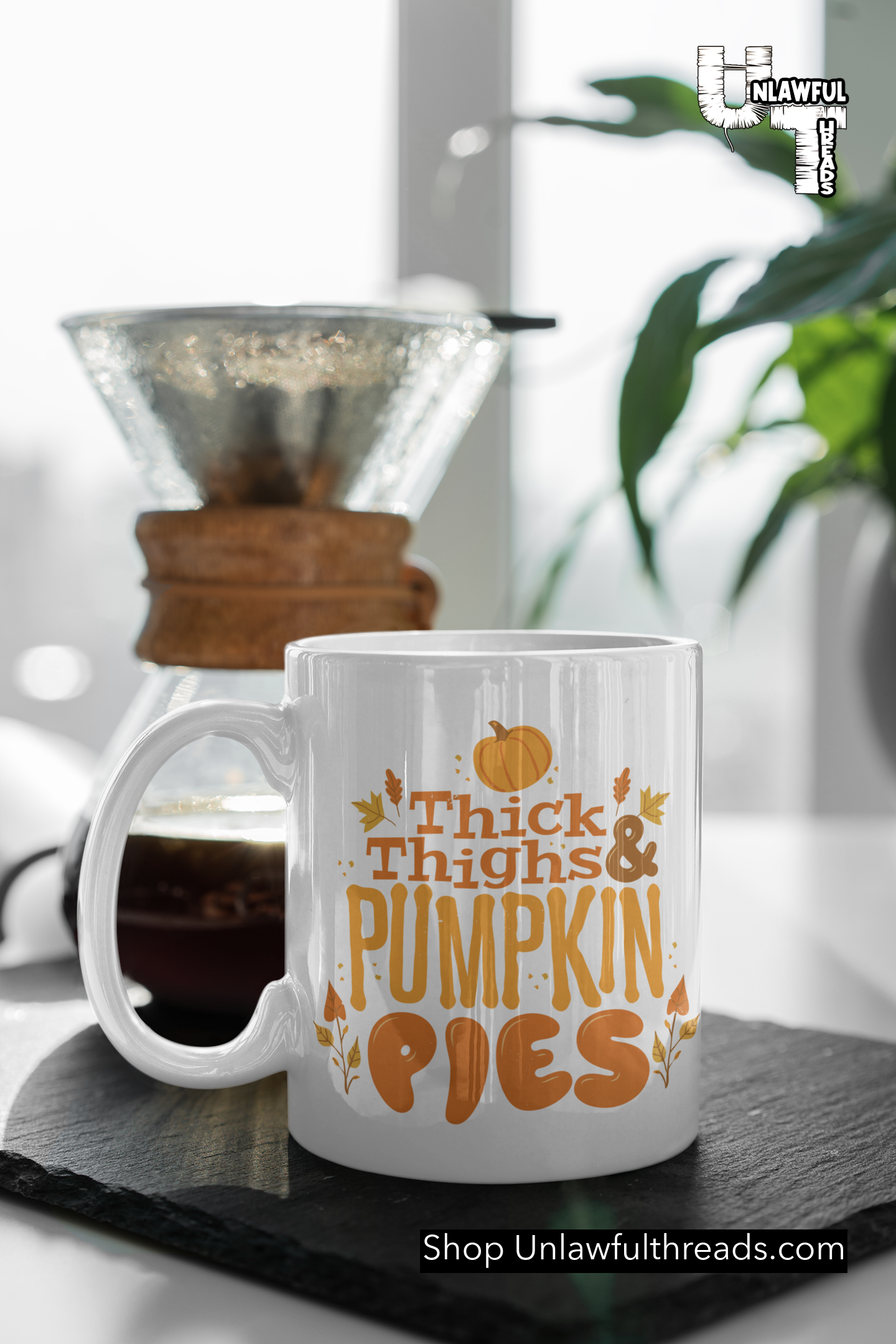Thick Thighs and Pumpkin Pies classic ceramic coffee mug 15 ounces