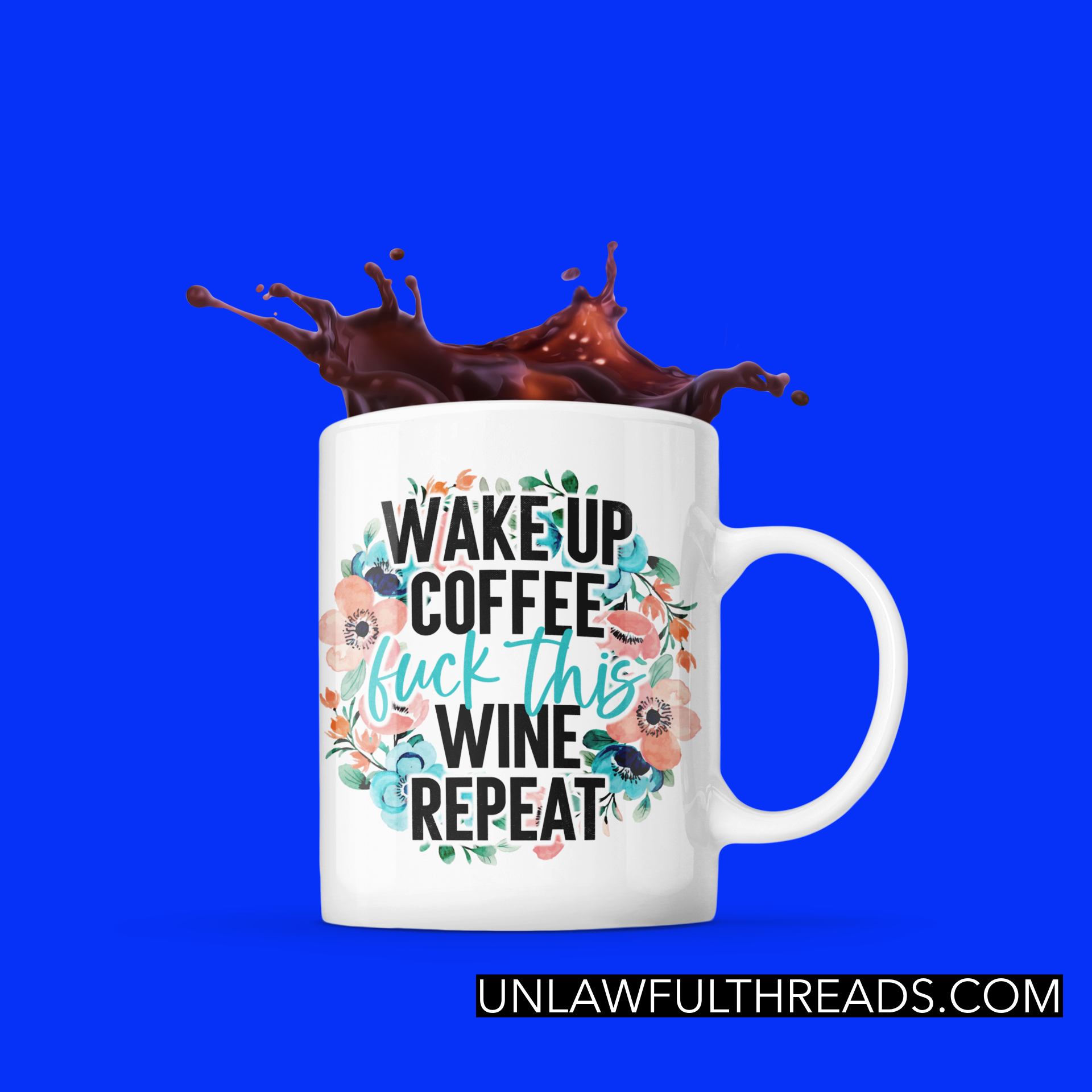 Wake Up COFFEE Fuck This WINE Repeat coffee mug 15 ounces