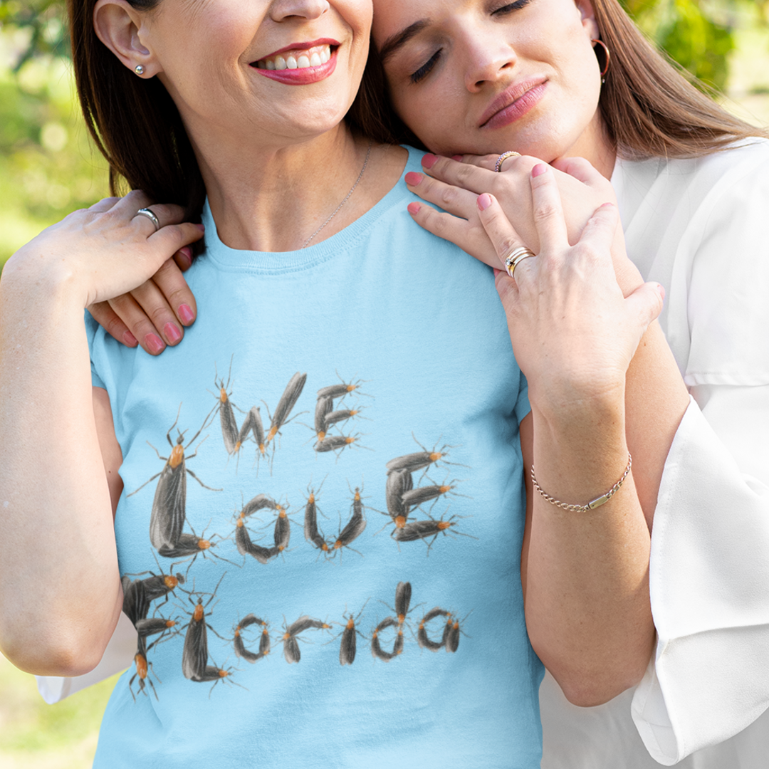 We Love Florida Lovebugs Love Florida all cotton shirts, men's and women's fits available