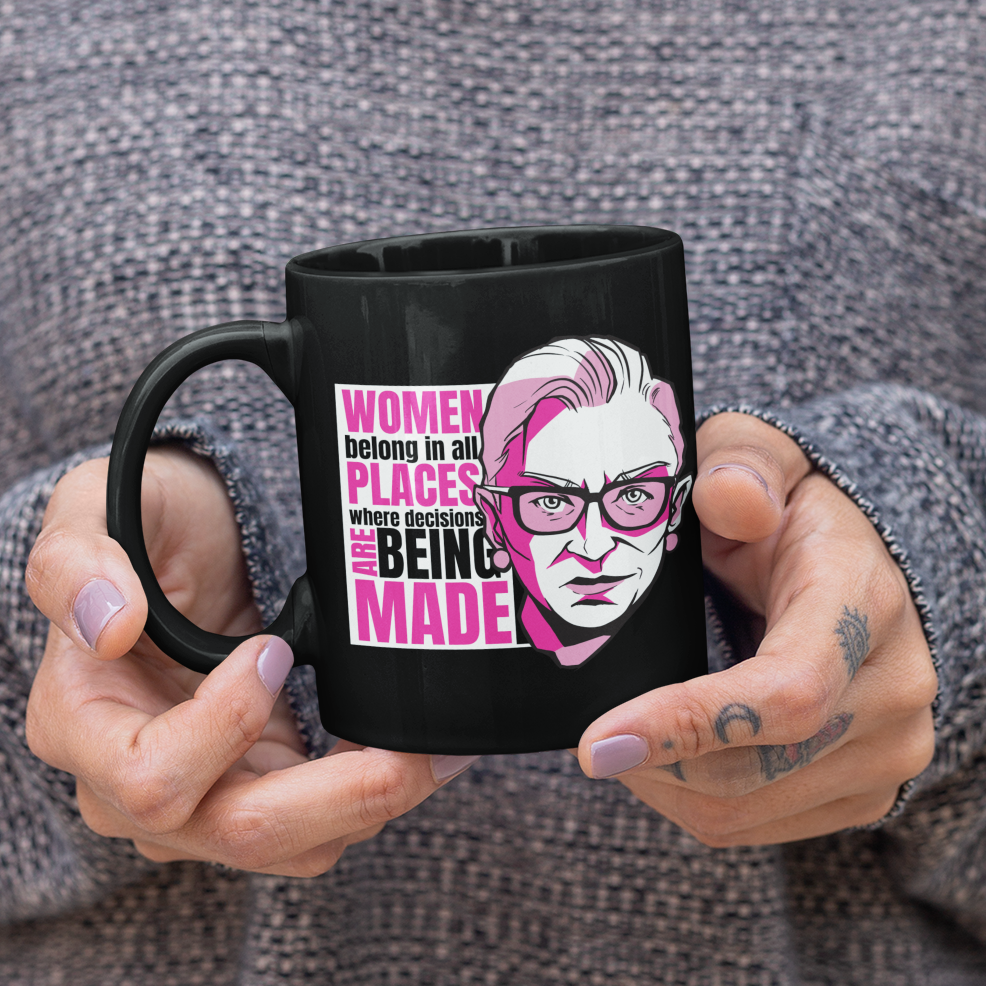 Women belong in all places where decisions are being made rbg ruth bader ginsberg shirts or 15 ounce coffee mugs